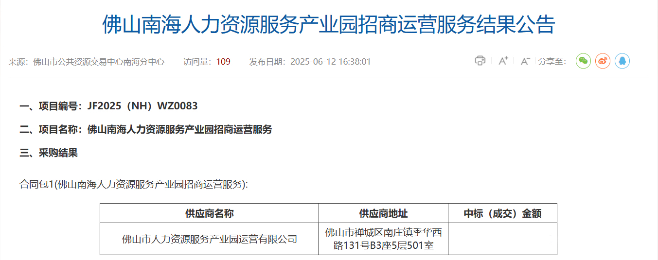 发布时间:2025-06-30再启新章!博尔捷中标南海人力资源服务产业园招商运营服务项目