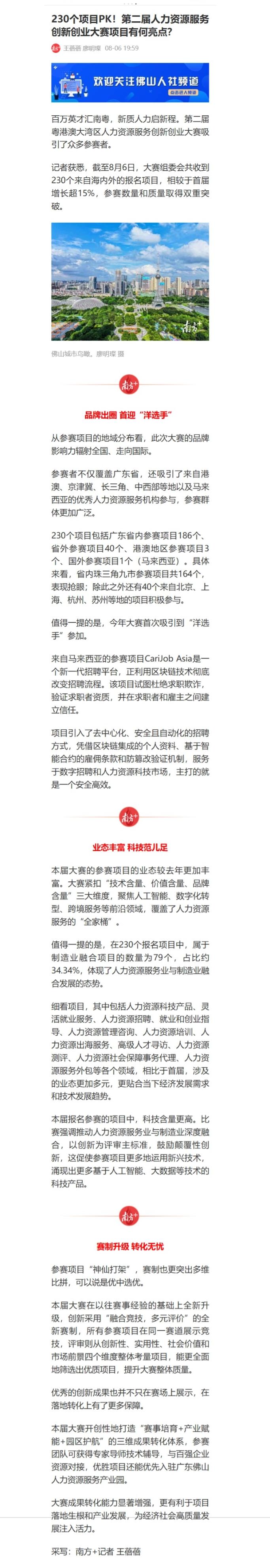 南方日报:突破性开局!第二届大湾区人力资源服务双创赛初赛圆满收官
